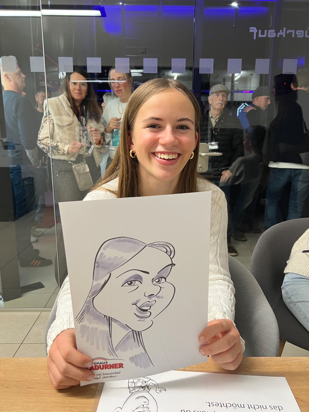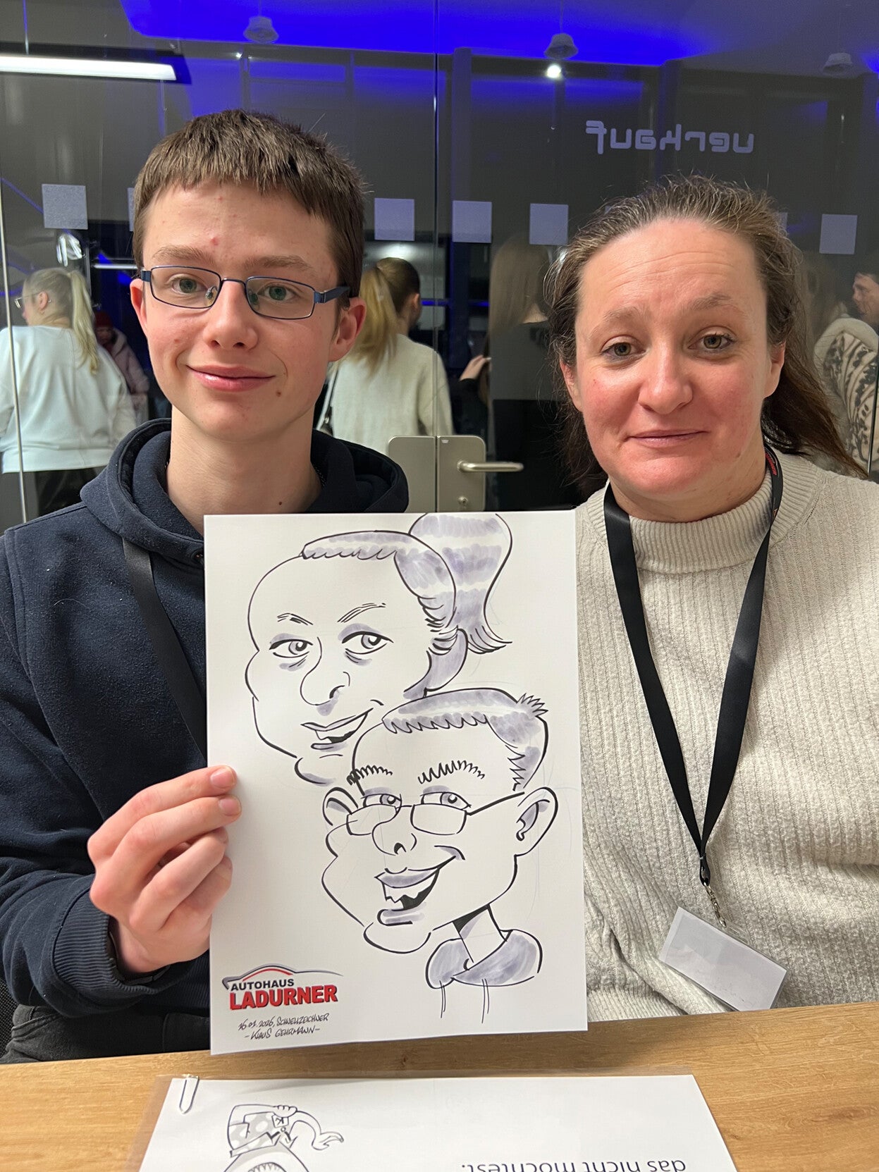 Ich zeichne grundsätzlich nur vor Ort und auf Papier. Kein Tablet, keine Karikaturen nach Fotos. Sehr spezielle Wünsche oder Preisabfragen im Vergleich mit anderen Anbietern sehe ich nicht so gerne.